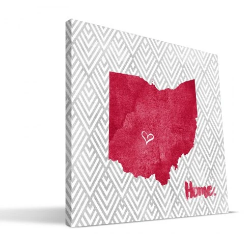 Decorate your walls in modern style with the Ohio State Buckeyes 12″ x 12″ Home Canvas Print! This printed canvas piece is wrapped on a wood frame and is delivered ready to hang. +Featuring a watercolor design in school colors, and a chevron background, this beautiful print will look great in the home or office!