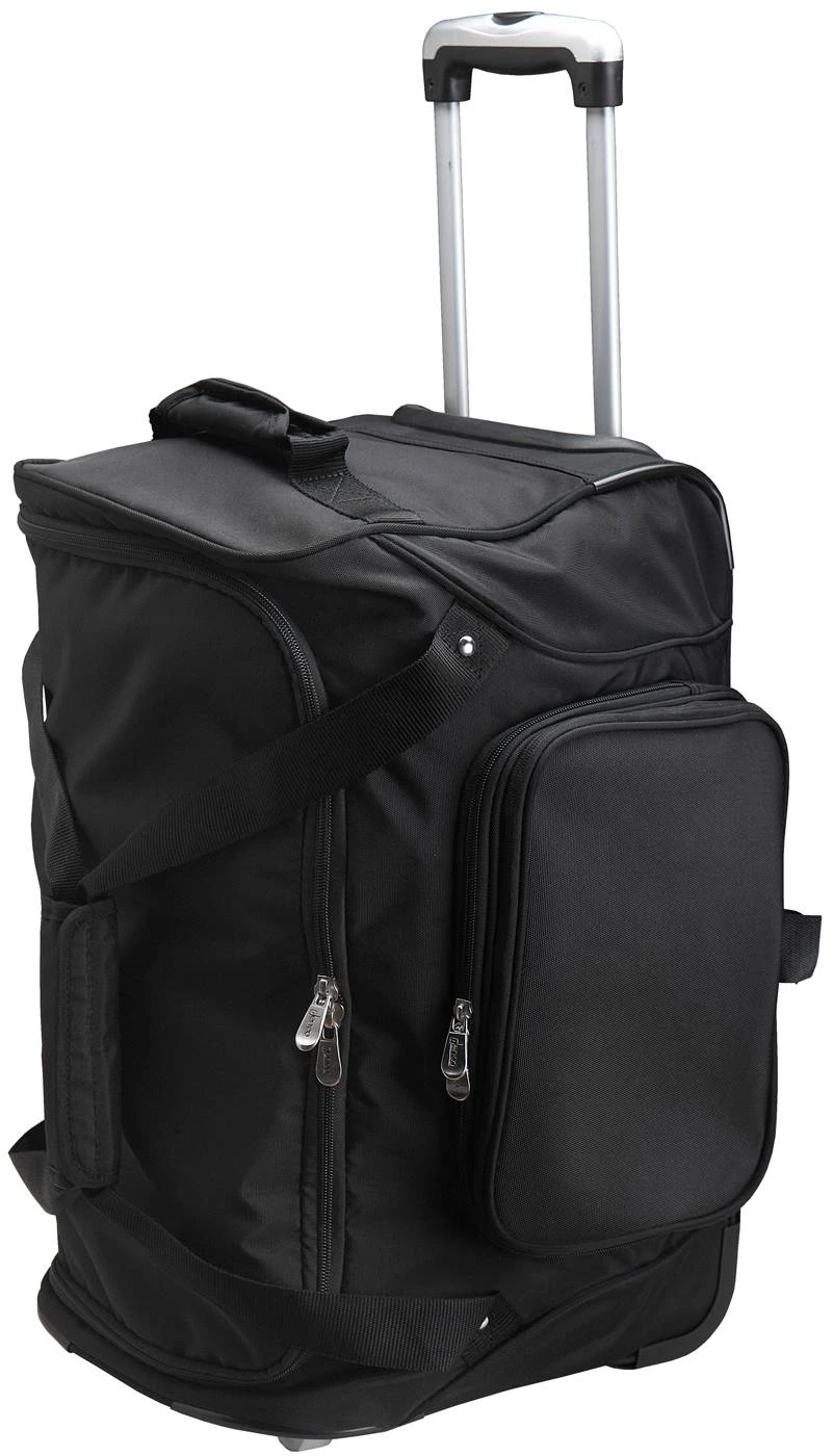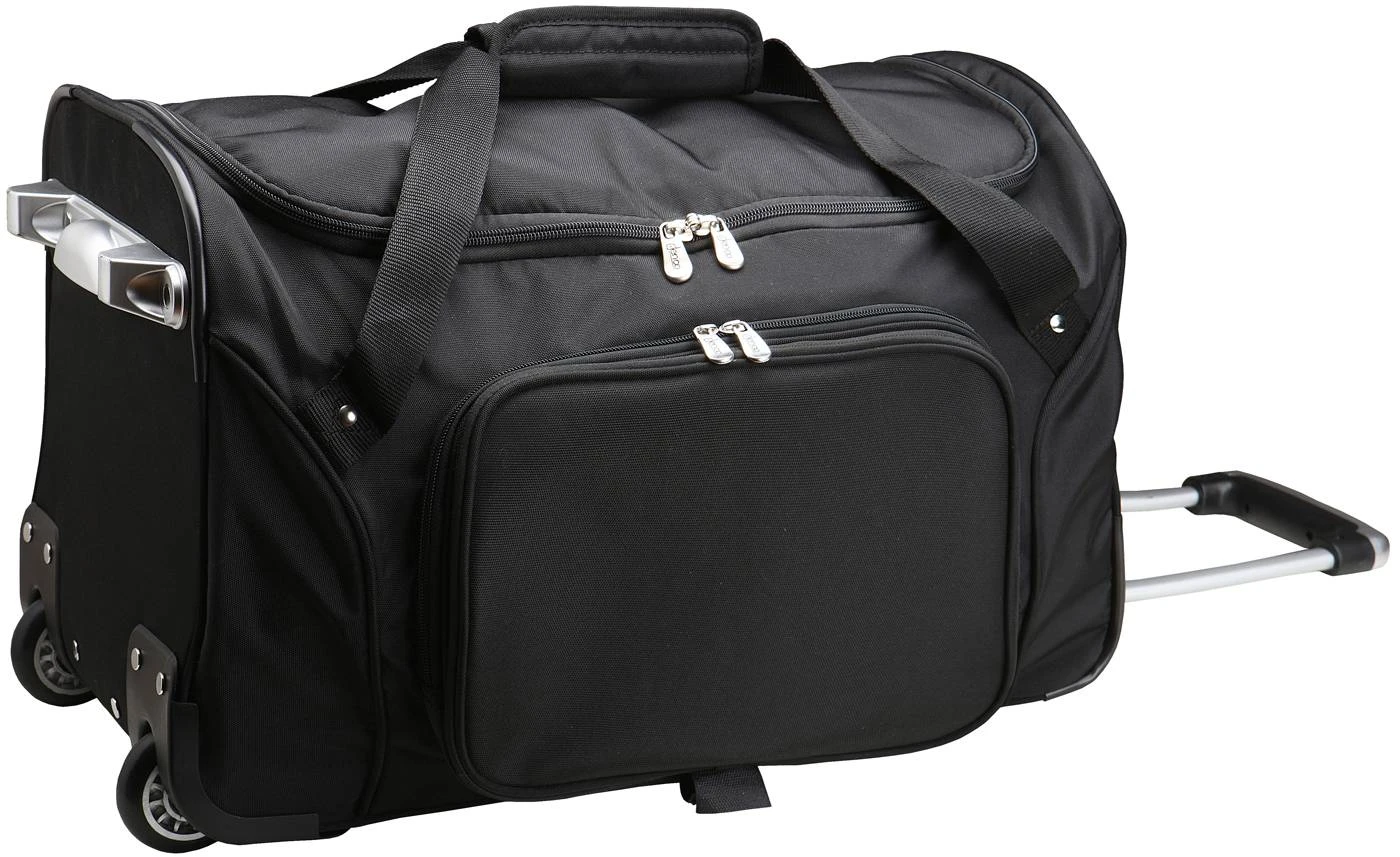 The Ohio State Buckeyes 22″ Rolling Duffle Bag combines the ease of a wheeled bag, with the convenience of a duffle with carry handles. Embroidered with your favorite team’s logo, you’ll be able +to easily spot your duffle in a sea of bags at the airport. The top compartment provides quick and easy access, while the drop bottom section is ideal for shoe or sports equipment storage. Smooth rolling inline wheels and a telescoping handle make it a breeze to roll this officially licensed duffle from Denco.
