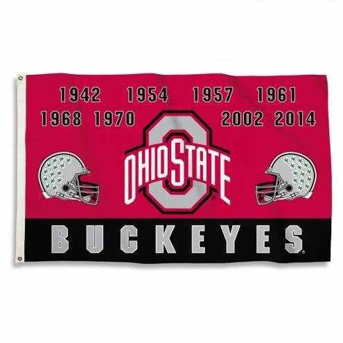 Fly your team colors high and proud with the Ohio State Buckeyes 3′ x 5′ Championship Flag! This heavy duty polyester flag features official team graphics and vibrant team colors. It’s double stitched +for added durability, perfect for windy days. Two metal grommets make flying this flag a breeze.