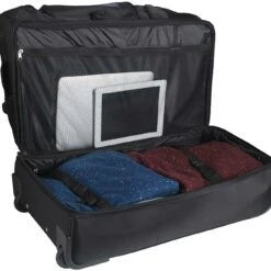 The Ohio State Buckeyes 36″ Checked-in Wheeled Duffel has the spaciousness of a luggage bag, but is lightweight and stowable. It can be packed away in the included drawstring when not in use. +Equipped with ball bearing wheels and a comfortable padded handle, this duffel is easy to wheel. Pack your clothes in the roomy main compartment, and head to your next destination showing your team pride!
