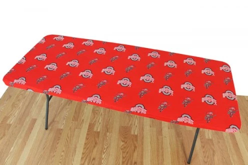 Turn your standard folding table into the ultimate tailgate table with the Ohio State Buckeyes 6′ Logo Table Cover! This durable table cover is printed with team logos all over, making it perfect +for parties and tailgates. Elastic corners provide a secure fit. Cover the table and bring out the delicious food!