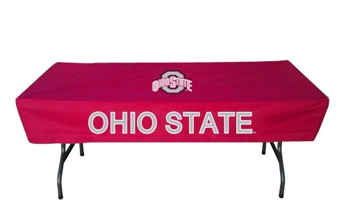 Whether its a tailgate, graduation party, or picnic, the Ohio State Buckeyes 6′ Table Cover will come in handy. Constructed of durable polyester fabric, this cover is designed to last, and fits standard +72″ x 30″ tables. The team colored cover is decorated with team logos on all four sides and the top. With its 12″ overhang, this college table cover will make a simple folding table look much more attractive!