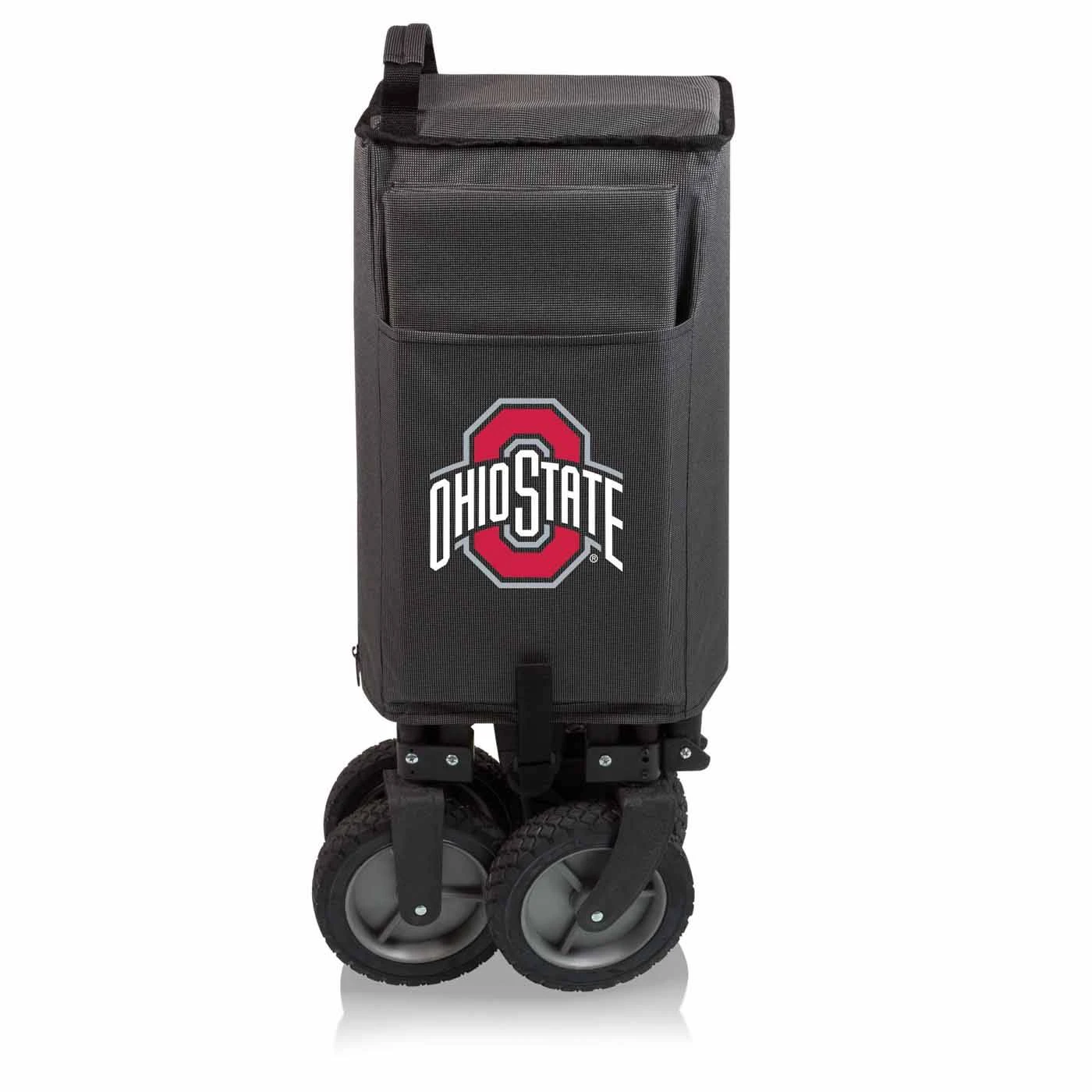 Perfect for transporting food and gear to the beach or tailgate, the Ohio State Buckeyes Adventure Wagon will be a lifesaver for parents! This portable wagon is easy to set up and folds +into a compact size for storing in the car. With its steel frame and durable polyester covering, this wagon is ready for all sorts of family adventures!