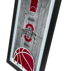 Show your school pride with the Ohio State Buckeyes Alumni Mirror from the Holland Bar Stool Company. With it’s simple but elegant design, your school colors burst through the 1/8″ thick glass and +are highlighted by the mirrored accents. Framed with a black, 1 1/4″ wrapped wood frame with saw tooth hangers, this 26″ x 15″ mirror is ideal for your office, garage, or any room of the house. Whether purchasing as a gift for a recent grad, or for yourself, you can take satisfaction knowing you’re buying a mirror that is proudly Made in the USA.