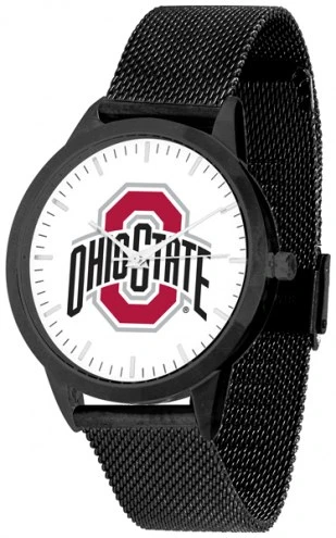 Combine your passion for fashion and sports with the Ohio State Buckeyes Black Mesh Statement Watch! The Sleek, understated, full-sized dial, paired with a clean, silhouette frame, is the essence of contemporary design. +Created as a mesh of both men’s and women’s styling, this is truly a statement timepiece.