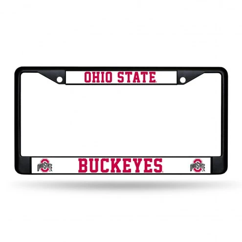 Mount the Ohio State Buckeyes Black Metal License Plate Frame on your vehicle, and hit the road with team pride! This chrome-finish metal frame is decorated with team graphics, and features pre-drilled holes +to make mounting easy. Now you can be a fan wherever your travels take you!