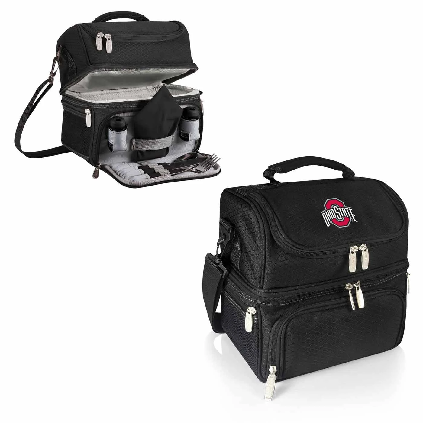 Pack your lunch in style with the Ohio State Buckeyes Black Pranzo Insulated Lunch Box. This insulated bag has everything you need, including separate hot and cold compartments, silverware, and salt and pepper +shakers. It can hold up to eight 12 oz. cans, making it spacious enough for an extra big lunch!
