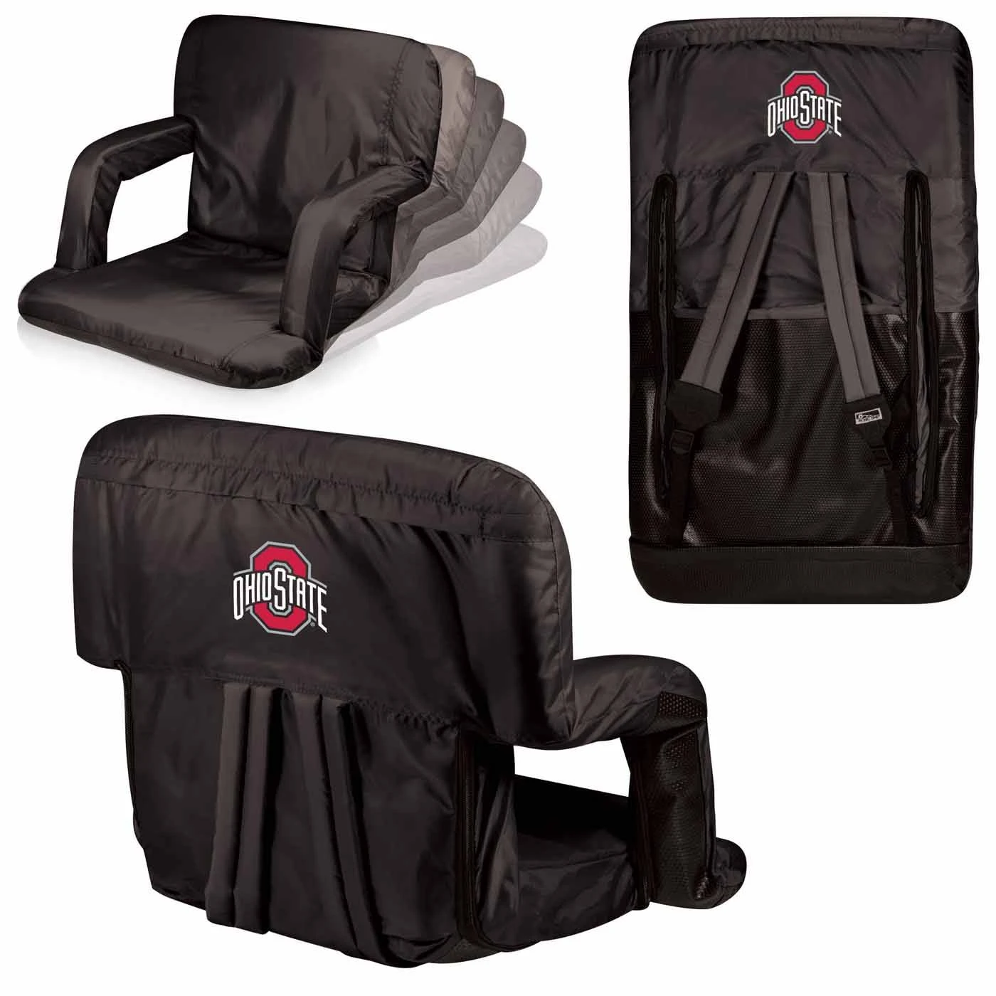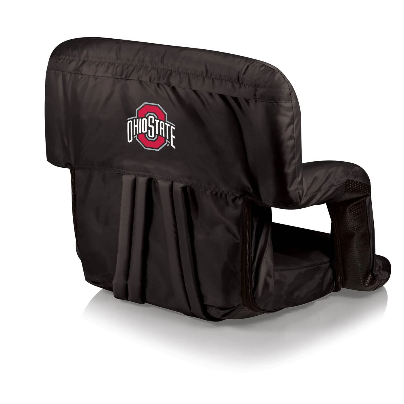Whether you use it at the beach, the pool, or the stadium, the Ohio State Buckeyes Black Ventura Portable Outdoor Recliner will work for many outdoor occasions. Filled with high-density foam, the Ventura +seat provides the firmness needed to support your back and bottom. Six adjustable backrest positions allow for you to find the right comfort zone, and you can even fold in the armrests to make the chair wider! Adjustable backpack straps make it easy to carry from the car to your destination.