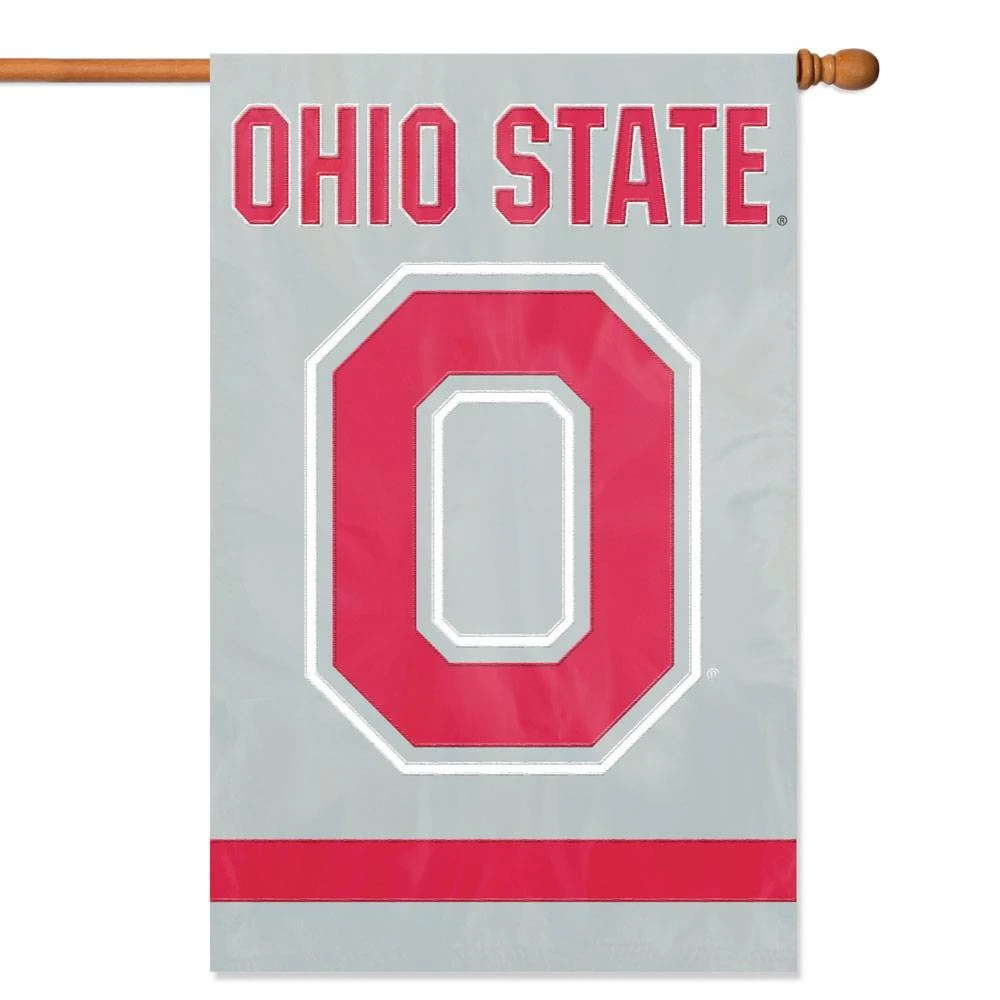 Show your team spirit on game day and every day with this officially licensed Ohio State Buckeyes Block Applique Banner Flag! This double-sided 44″ x 28″ banner flag features a team logo on +both sides. Designs are applique and embroidered for a high quality look and feel. Easily hang outdoors using sewn-in pole sleeve or indoors with attached hang tabs. Made of durable, heavy-duty nylon fabric. Flag pole not included.