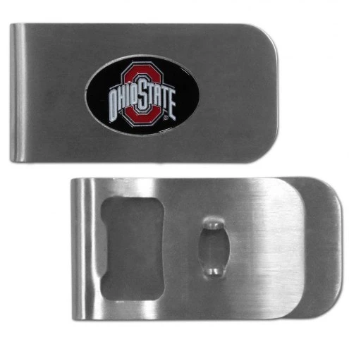 This Ohio State Buckeyes Bottle Opener Money Clip features a classic, brushed-metal finish with a handy bottle opener feature on the back. The clip has a metal team emblem with expertly enameled detail.