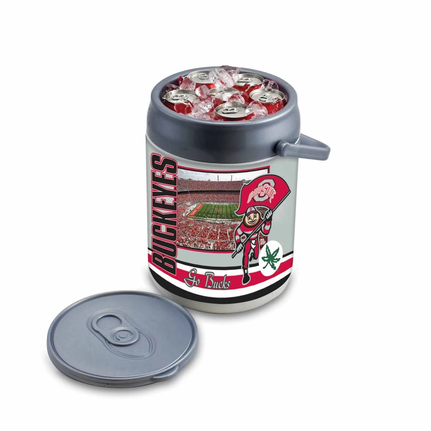 Ditch the old boring cooler and show your team pride with the Ohio State Buckeyes Can Cooler. This beverage can replica is made of durable plastic and holds up to 10 cans, or +9 quarts. Bring it to the tailgate, or use it for your backyard party! It’s even great as a display piece when it’s not in use.