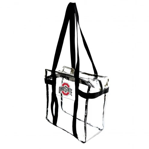 A stadium approved clear bag, the Ohio State Buckeyes Clear Tote Along is the stylish choice for fans of any team. This bag has stretch straps that allows you to bring your favorite +team blanket on a picnic, or for those cold windy games. Dual shoulder straps with 12″ drops allow for a comfortable carry over the shoulder or in the hand. Sturdy PVC with polyester trim will hold up to the elements outside. Makes a great gift, add one for the super fan on your shopping list!