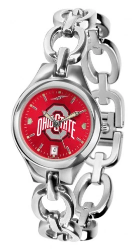 Support your favorite team while rocking a fashionable and classic piece of jewelry in the Ohio State Buckeyes Eclipse AnoChrome Women’s Watch! The polished stainless steel band was bracelet inspired for a graceful +look, while the watch face features an AnoChrome dial and an emblazoned school logo for intense luster and unique style.