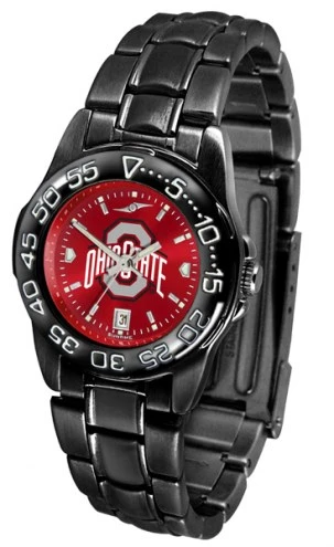 Featuring a sleek gunmetal finish, the Ohio State Buckeyes Fantom Sport AnoChrome Women’s Watch is perfect for the fan that wants a bold and durable watch. The full color AnoChrome dial really pops, +showcasing the team colors and logo. Scratch resistant glass, and shock and water resistant qualities provide added durability to this officially licensed watch from Suntime.