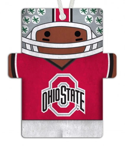 The Ohio State Buckeyes Football Player Ornament by Fan Creations is custom printed to mimic the rustic look of real wood. Designed and produced in the USA, this gift item is perfect for +the biggest sports fan!