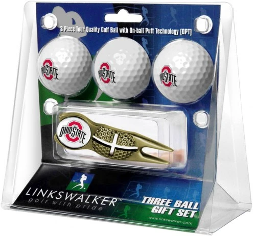 This Ohio State Buckeyes Gold Crosshair Divot Tool & 3 Golf Ball Gift Pack includes 3 collegiate logo’d LinksWalker ProVictory golf balls featuring On-Ball Putt Technology (OPT), paired with a LinksWalker Black Crosshair +Divot Tool and 4 wooden golf tees as a bonus. The patented ProVictory Golf Balls featuring OPT allow you to visually line up the direction of the putt and square up your putter face. The Crosshairs Divot Tool by LinksWalker provides a solid metal construction with a unique spherical portion of the divot tool to draw lines on a golf ball. This helps with both putting and driving alignment. The top handle portion has a magnetic front that securely holds a removable high quality die-struck, enamel filled collegiate logo’d ball marker.