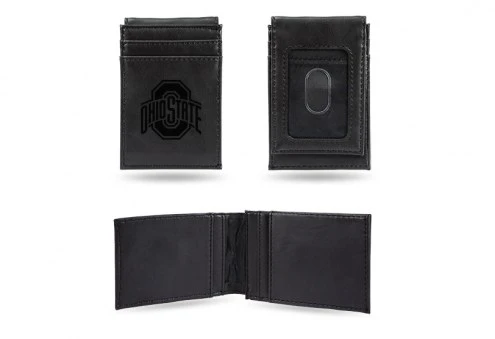 Show your team spirit where your money is with the Ohio State Buckeyes Laser Engraved Black Front Pocket Wallet! Made of faux leather, this stylish accessory features an engraved team logo that will +never fade away. It is designed to hold 6 credit cards, your ID, and has a magnetic clip to secure your cash.