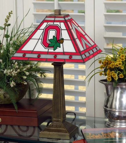 The Ohio State Buckeyes Mission Table Lamp features a tiffany-style glass shade with team colors and logo. The base and post have a nice brass finish with a close attention to detail. This +collegiate lamp is a nice addition to any home or office!