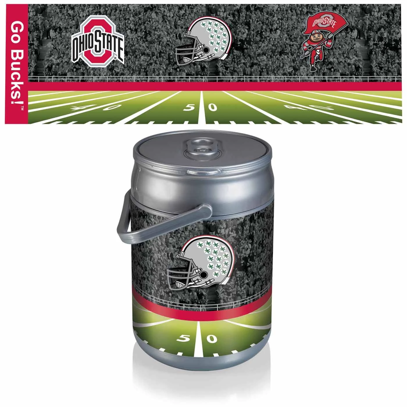 Ditch the old boring cooler and show your team pride with the Ohio State Buckeyes NCAA Can Cooler. This beverage can replica is made of durable plastic and holds up to 10 cans, +or 9 quarts. Bring it to the tailgate, or use it for your backyard party! It’s even great as a display piece when it’s not in use.