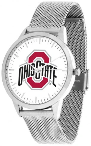 Combine your passion for fashion and sports with the Ohio State Buckeyes Silver Mesh Statement Watch! The Sleek, understated, full-sized dial, paired with a clean, silhouette frame, is the essence of contemporary design. +Created as a mesh of both men’s and women’s styling, this is truly a statement timepiece.
