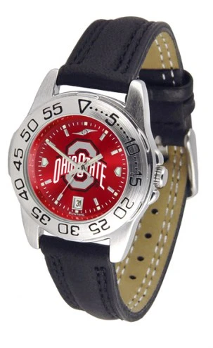 Featuring a genuine leather strap and AnoChrome color dial, the Ohio State Buckeyes Sport AnoChrome Women’s Watch is one sharp looking team watch! The AnoChrome finish presents a radiant and shiny appearance, complimenting +the team logo on the dial. Accurate quartz movement, shock resistance, and scratch resistant glass add to the durability and quality of this officially licensed watch from Suntime.