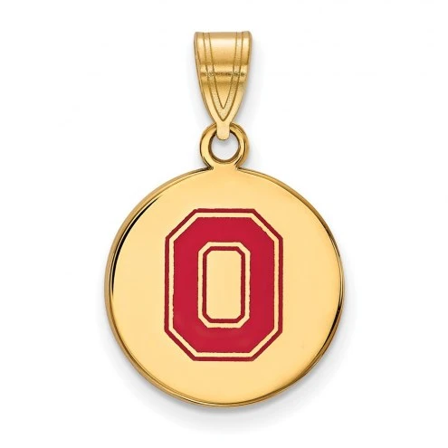 The Ohio State Buckeyes Sterling Silver Gold Plated Medium Enameled Disc Pendant is the perfect accessory to finish your game day outfit! Made of high quality Sterling Silver, this pendant is precision cut +and has a polished finish for a beautiful look. Using state-of-the-art manufacturing technology, Logo Art delivers premium quality jewelry for every fan.