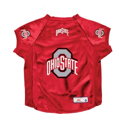 Get your pet ready for the game with this officially licensed Ohio State Buckeyes Stretch Dog Jersey. This poly mesh jersey is designed with the team colors and logo, and has new stretch +fabric on the sides for the perfect fit. It features woven trim on the neck and sleeves, over lock stitching detail, and woven jock tag on the back.