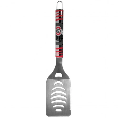 The Ohio State Buckeyes Tailgater Spatula really catches your eye with flashy chrome accents and vivid team digital graphics. The 420 grade stainless steel spatula is a tough, heavy-duty tool that will last +through years of tailgating fun. The spatula features a bottle opener and sharp serrated edge.