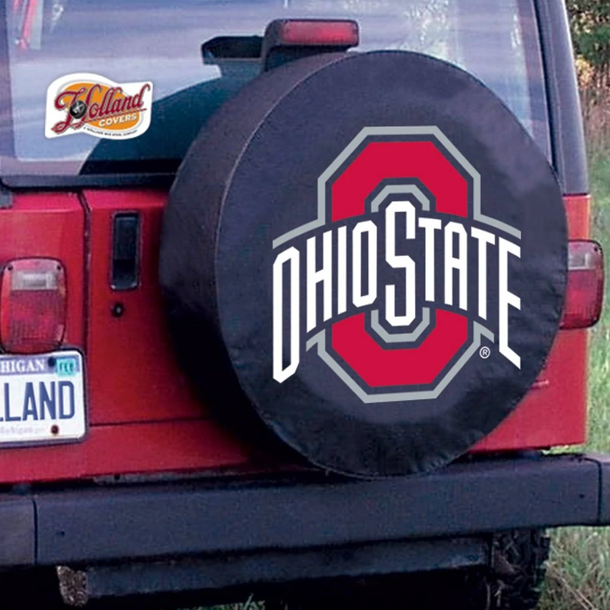 This Ohio State Buckeyes Tire Cover from Holland Bar Stool Co. is hand-made in the USA. A state of the art printing process utilizing UV resistant inks ensures the most detailed, durable image +possible able to withstand direct sun exposure and still look great year after year. The commercial grade, marine vinyl holds up in even the harshest weather conditions. Each cover is made to order for an exact fit to your specific tire size. Support your team in total style with the help of an American Made Product from Holland Bar Stool Co!