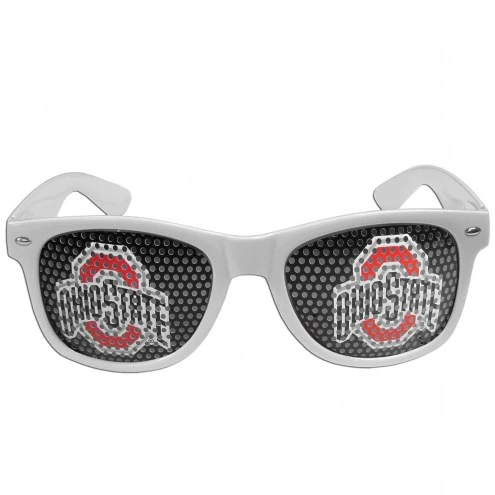 The Ohio State Buckeyes White Game Day Shades are the perfect accessory for the devoted fan! These sunglasses have durable polycarbonate frames with flex hinges for comfort and damage resistance. The lenses feature +brightly colored team clings that are perforated for visibility.
