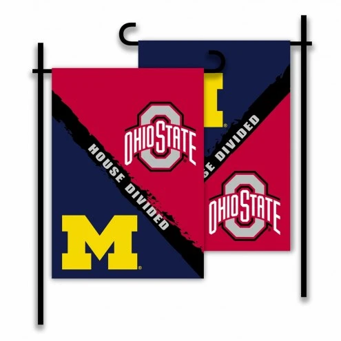 The Ohio State/Michigan House Divided Garden Flag is lined for clear visibility from both sides. The flag is made from high quality, 150 denier polyester. Included with the flag are suction cups to +display your flag in a window. Everyone will know your favorite team whether you display the flag in your window or in your yard. Pole sold separately.
